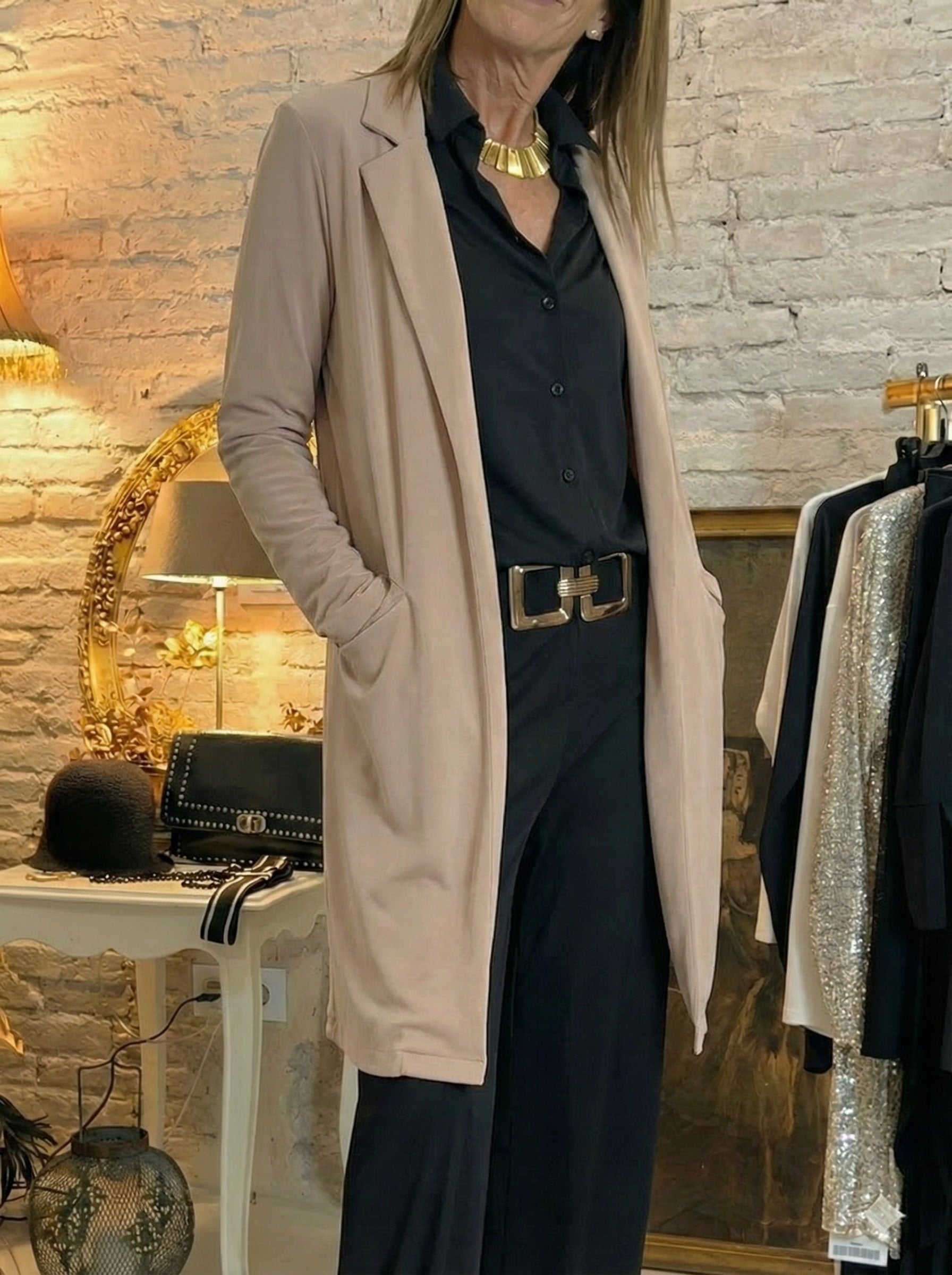 Una prenda versátil y sofisticada, perfecta para completar looks formales o elevar conjuntos más casuales.