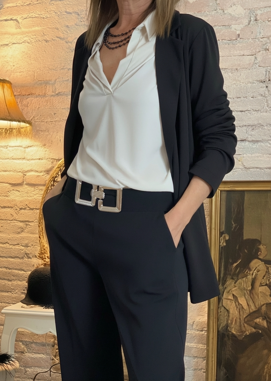 Blusa Asimétrica de Punto Elástico Suave – Elegancia y Movimiento Esta blusa con caída asimétrica...