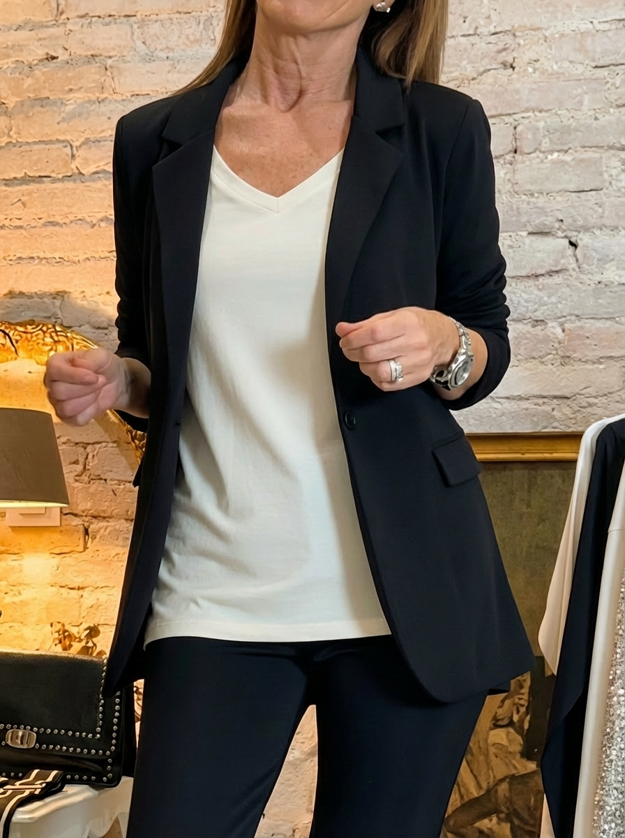 Ideal para elevar tanto un look profesional como uno más relajado, esta americana combina elegancia atemporal con comodidad diaria.