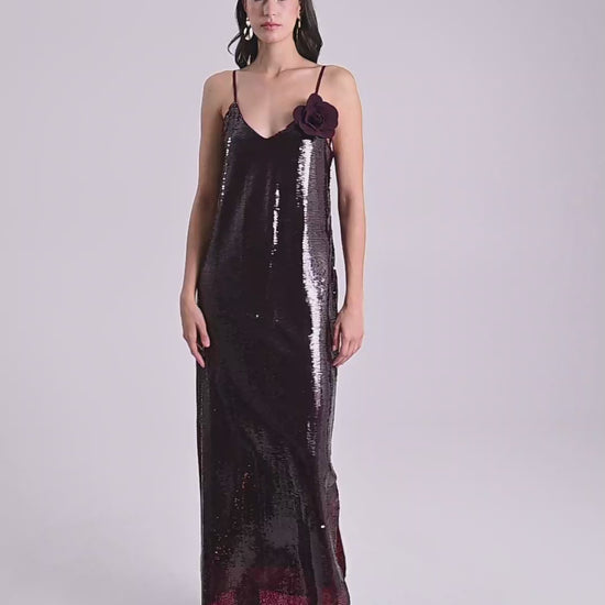 Vestido burdeos con lentejuelas all-over